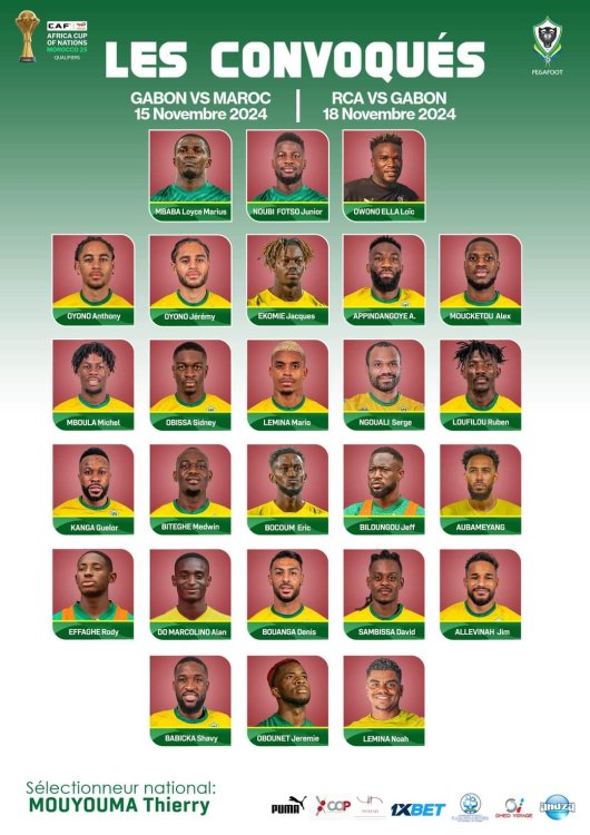 Lors de cette conférence, Dieudonné Thierry Mouyouma a également révélé la liste des 27 joueurs, dont le 27ème n’est rien d’autre que Bruno Ecuele Manga (sans club), qui participeront à ce regroupement crucial pour les deux dernières journées des éliminatoires. Le sélectionneur a fait appel à un effectif varié, comprenant des joueurs expérimentés comme Pierre-Emerick Aubameyang, ainsi que des talents émergents tels que David Sambissa et Jim Allevinah.