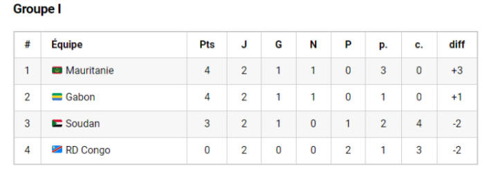 Le Soudan marque ses trois premiers points dans le groupe et se classe troisième, à un petit point du Gabon, la Mauritanie, conserve la tête du groupe I.