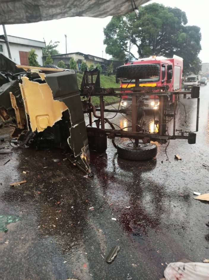 Selon les témoins le camion conduit par les deux militaires en partance de l’aéroport a percuté un autre camion qui roulait en sens inverse.