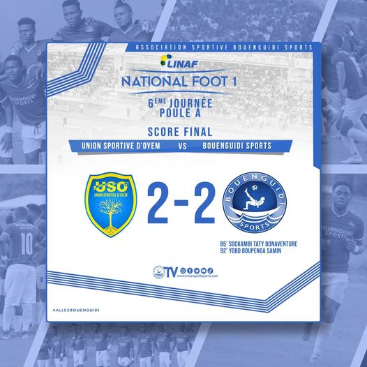 Le club de Koulamoutou, Bouenguidi Sports a encore perdu des points au stade Gaston Perylle de Bitam. Face à la formation de l’Union Sportive d’Oyem à sa portée. Menés tout au long de la partie, les coéquipiers de Bonaventure Sokambi buteur tout comme Samin Yobo vont remettre les pendules à l’heure (2-2) dans les ultimes instants de la partie.