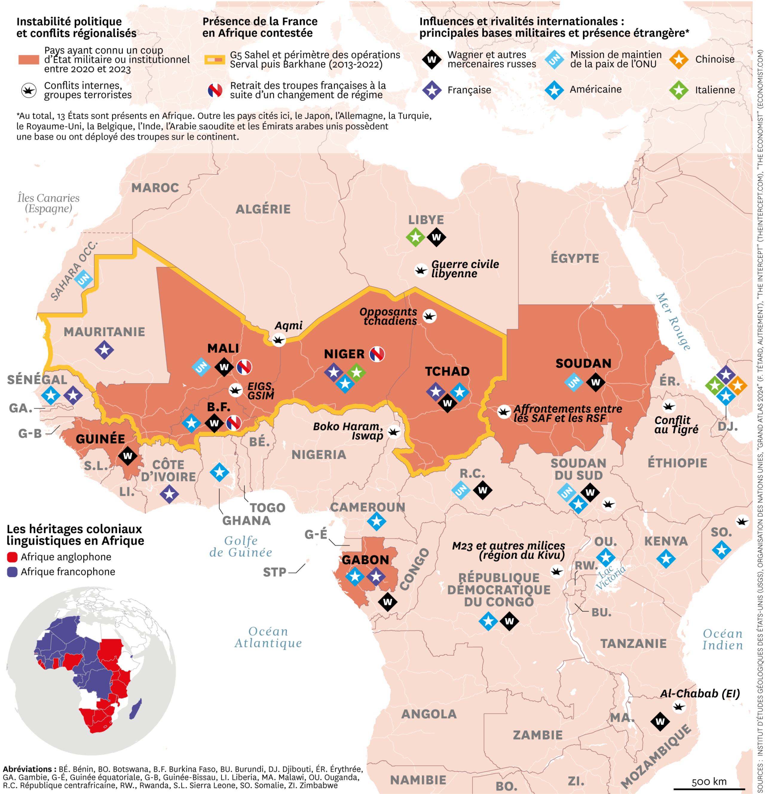 Et la propagande de Moscou, qui place ses pions dans la région avec la milice Wagner, vient cristalliser ce ressentiment. Mais les Français se voient aussi reprocher des dysfonctionnements dont ils ne sont pas responsables, les vieux intérêts politiques de Paris – la célèbre “Françafrique*” – servant alors d’alibi pour justifier tous les malheurs qui frappent le continent.