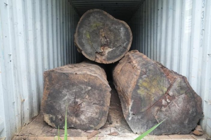 La visite de terrain a permis de déceler la présence d’environ dix (10) conteneurs abandonné chargés de kevazingo dont la coupe est interdite au Gabon depuis 2018.