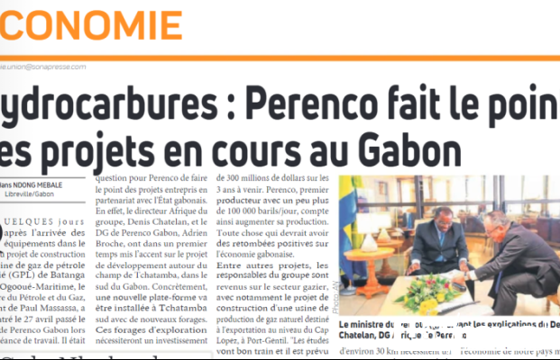 Parce que PERENCO, qui produit déjà 100 000 Barils de pétrole par jour, va construire sur 3 ans une nouvelle plate-forme à Tchatamba sud avec des nouveaux forages, et va augmenter sa production, le Quotidien L’UNION du samedi 29 avril 2023 y voit tout de suite des retombées positives sur l’économie gabonaise.
