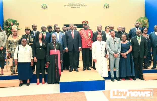 Cette journée solennelle a été marquée par plusieurs moments forts, notamment la lecture concise des conclusions des travaux et la remise symbolique du rapport général au Chef de l’État. En reconnaissance de leur leadership dans la conduite réussie de ces assises, le Grand Maître des Ordres Nationaux a également honoré les membres du bureau du Dialogue National Inclusif avec des médailles de l’Ordre National du Mérite Gabonais et de l’Ordre National de l’Étoile Equatoriale.