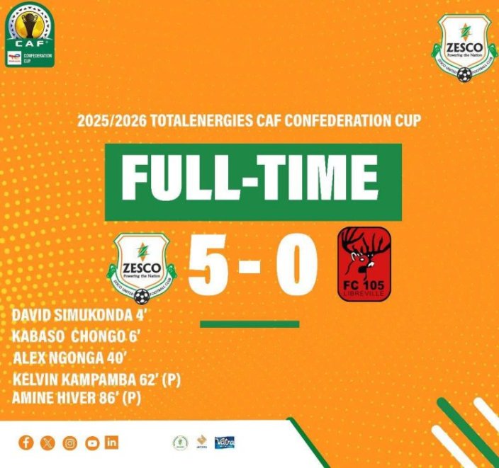 Au retour des vestiaires, Zesco United a confirmé sa supériorité. Kelvin Kampamba a transformé un penalty à la 62ᵉ minute, aggravant l’écart. Puis, dans les dernières minutes, Amine Hiver a marqué à son tour sur penalty (86ᵉ), portant le score final à 5-0 et éliminant définitivement le club gabonais, incapable de sauver l’honneur.
