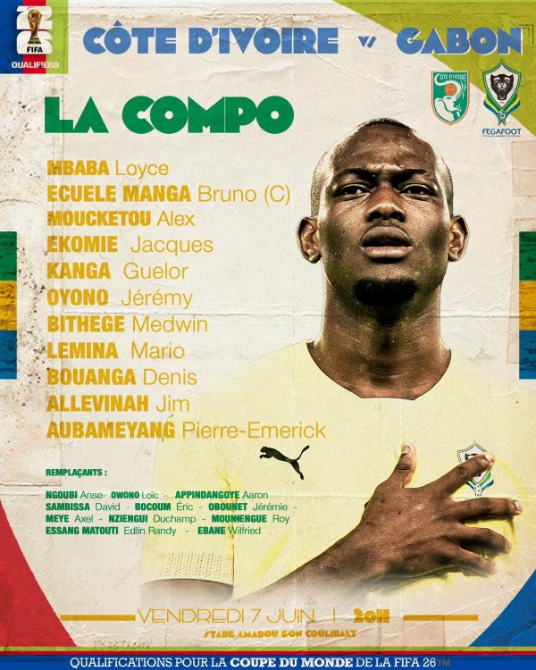 Éliminatoires CDM 2026 : le Gabon battu à Korhogo par les champions d’Afrique