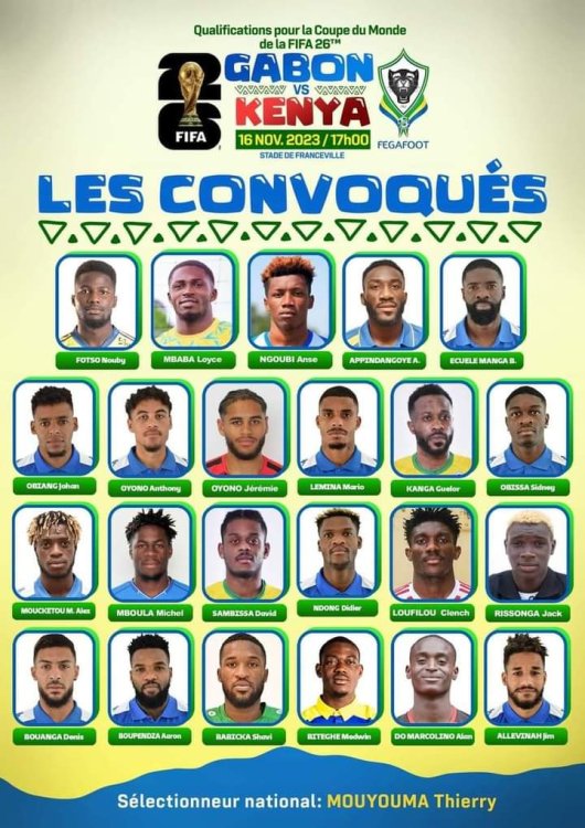 Depuis ce mardi 7 novembre 2023, Thierry Mouyouma, sélectionneur national a rendu public via les services de communication de la Fédération gabonaise de football (Fegafoot), sa liste des 23 joueurs retenus pour la première sortie des éliminatoires de la Coupe du monde 2026.