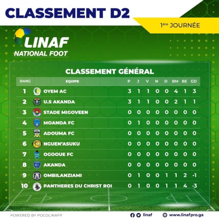 Signalons que pour des raisons externes à l’organe organisateur, la Ligue nationale de football (Linaf), a dû reporter certains matchs de cette journée de lancement à une date ultérieure. Une division qui enregistre dix écuries candidates à la première division gabonaise à l’issue de la dernière journée de la compétition.