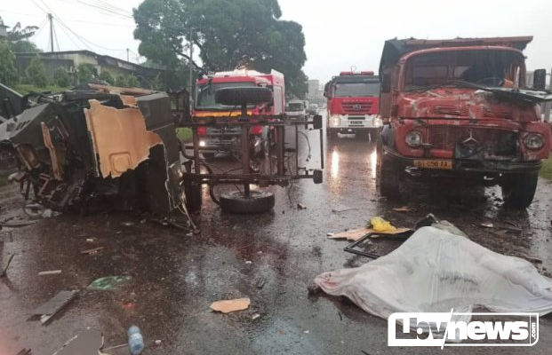 Selon les témoins le camion conduit par les deux militaires en partance de l’aéroport a percuté un autre camion qui roulait en sens inverse.