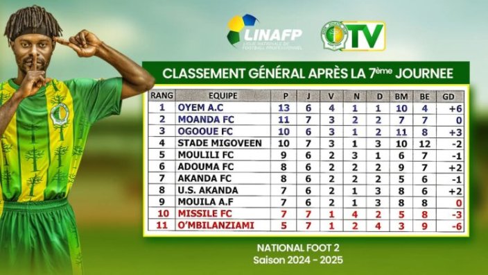 Cette 7e journée confirme la montée en puissance des clubs du Haut-Ogooué et maintient l’intensité dans la lutte pour le maintien. La suite du championnat s’annonce tout aussi palpitante.
