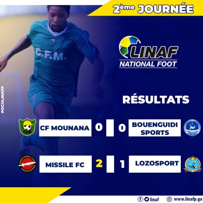 Au coup de sifflet final, auteur de belle prestation, Bouenguidi Sports contraint le Centre de formation de Mounana aux partages des points sur un score vierge de 0 but partout. Les deux protagonistes l’Association Sportive Bouenguidi Sports et le Centre de Formation Mounana conservent leur position au classement respectivement la 3e et 5e place de la poule A du National Foot 1.