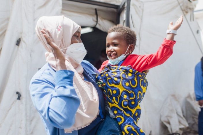 Binta a déclaré : « Je suis tellement heureuse. Je remercie Dieu et toutes les infirmières, et l’équipe de jour de Mercy Ships. Ici, sur le navire, Adama aimait jouer avec les autres enfants et avec les infirmières. »